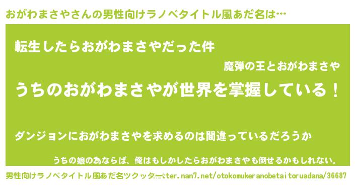 | 女子向けラノベタイトル風あだ名 | 『男装おがわまさやの憂鬱な任務』 |