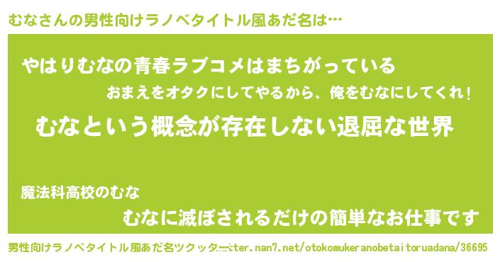 | 女子向けラノベタイトル風あだ名 | 『異世界で失敗しない100のむな』 |