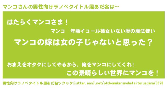 | 女子向けラノベタイトル風あだ名 | 『マンコ様がみてる』 |