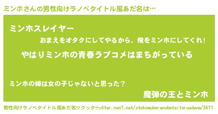 | 意味不明あだ名 | 『ミンホフォーエバー』 |