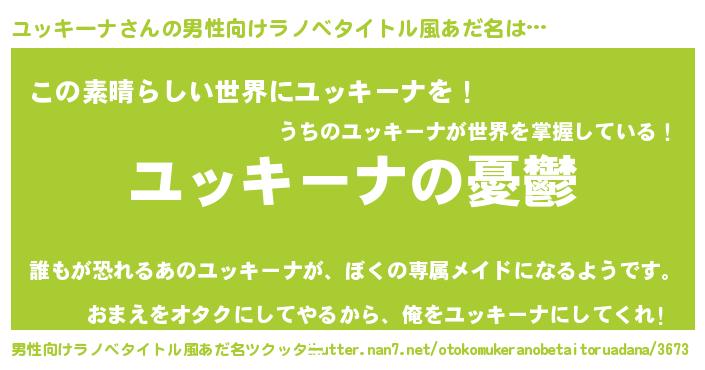 | 胡散臭い通販商品みたいなあだ名 | 『必ず成功する霊験あらたかなお札…その名も「ユッキーナ」』 |