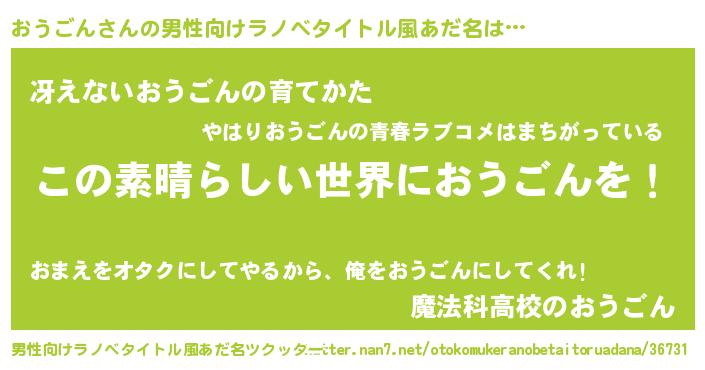 おうごんさんの男性向けラノベタイトル風あだ名をツクッター!