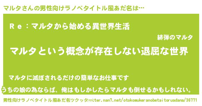 | 女子向けラノベタイトル風あだ名 | 『マルタの契約王妃』『マルタの婚約者』 |
