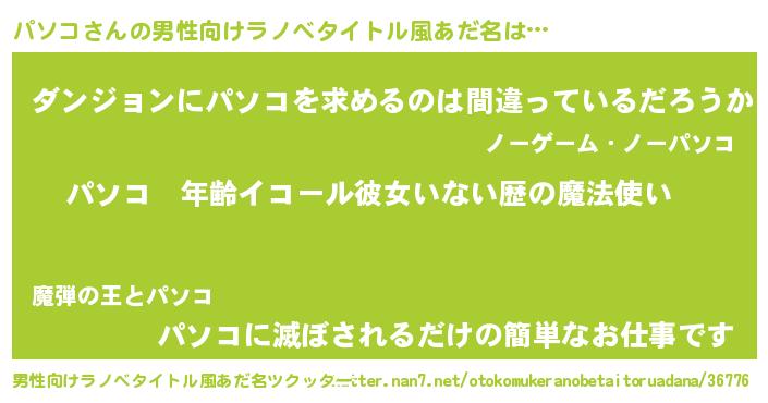 | 女子向けラノベタイトル風あだ名 | 『パソコの玉の輿計画!』『パソコ恋絵巻』 |