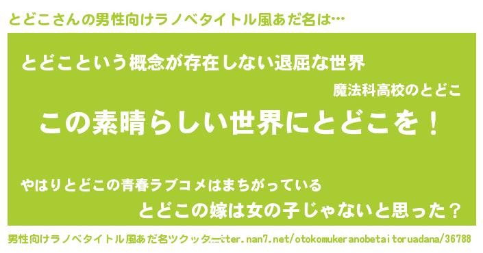 | 意味不明あだ名 | 『住所不定無職とどこ(74歳)』『自称とどこ』 |