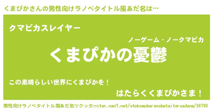 | 女子向けラノベタイトル風あだ名 | 『くまぴか姫と円卓の騎士』 |