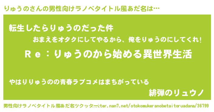 | 女子向けラノベタイトル風あだ名 | 『りゅうのストレイドッグス』 |