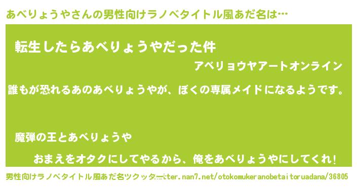 | 女子向けラノベタイトル風あだ名 | 『あべりょうやの契約王妃』 |