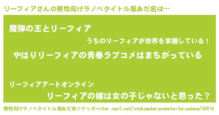 | 女子向けラノベタイトル風あだ名 | 『リーフィア伯爵の花嫁』 |