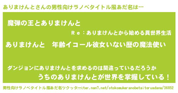 | 胡散臭い通販商品みたいなあだ名 | 『あなたにだけ特別に提供する限定10本のレアな日本酒…その名も「ありまけんと」』 |