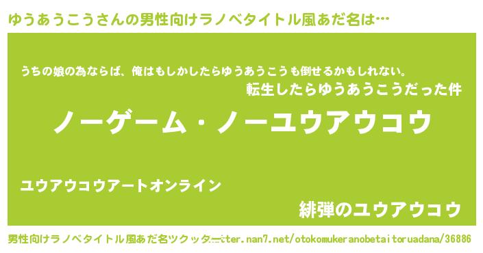 | ポケモン風あだ名 | 『ユックウザ』『ユウアダネ』 |