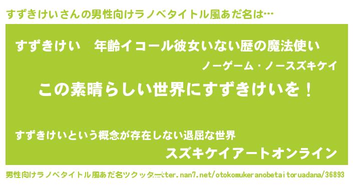 | 女子向けラノベタイトル風あだ名 | 『悪役すずきけいに転生したようですが、知った事ではありません』 |