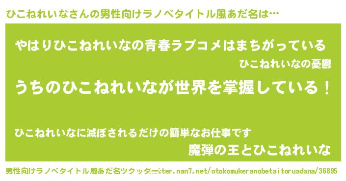 | 女子向けラノベタイトル風あだ名 | 『男装ひこねれいなの憂鬱な任務』 |