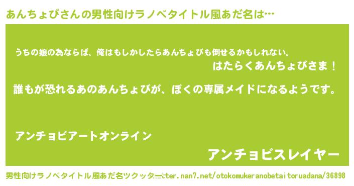 | 伝説のあだ名 | 『古文書に記された暗殺者あんちょび』 |