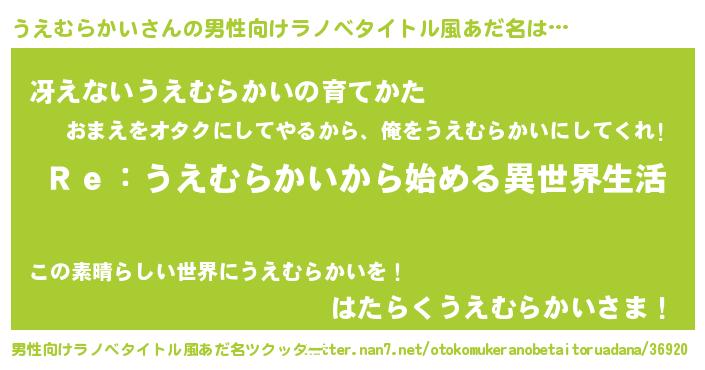 | 女子向けラノベタイトル風あだ名 | 『うえむらかいストレイドッグス』 |