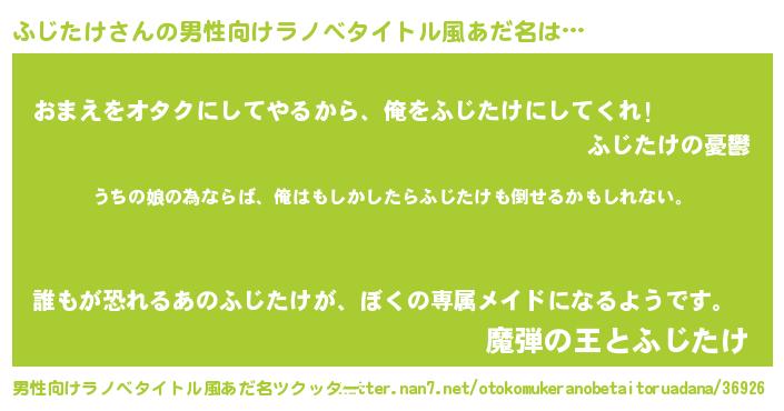 | 女子向けラノベタイトル風あだ名 | 『ふじたけ伯爵の花嫁』 |