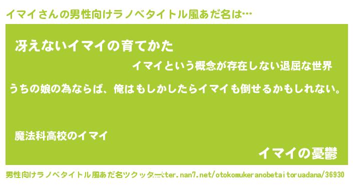 | 女子向けラノベタイトル風あだ名 | 『イマイの婚約者』『イマイアンティーク』 |