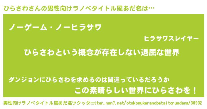 | 意味不明あだ名 | 『永久保存ひらさわ』 |