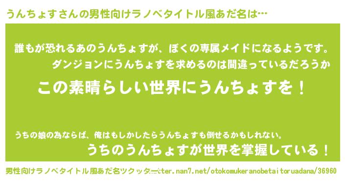 | 意味不明あだ名 | 『住所不定無職うんちょす(79歳)』 |