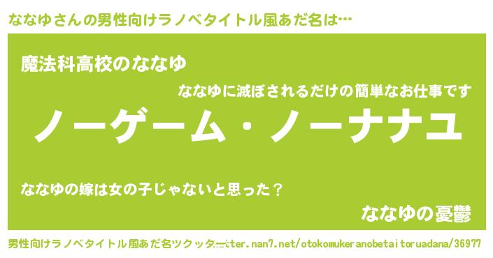 | 女子向けラノベタイトル風あだ名 | 『死神ななゆの再婚』『ななゆ様がみてる』 |