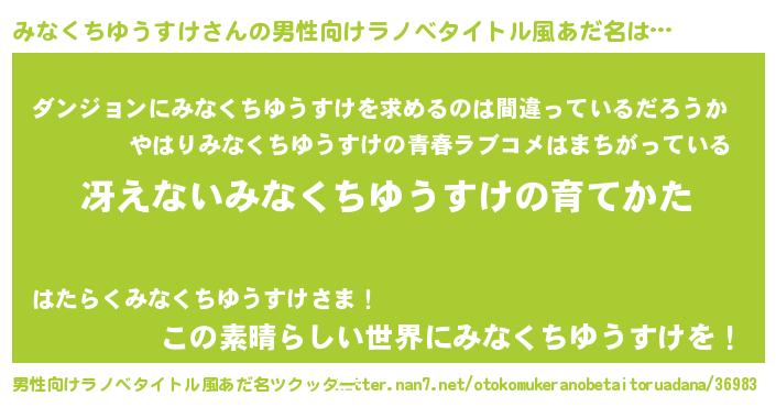 | 欧米人風あだ名 | 『みなくちゆうすけ・ステッグマイヤー』 |