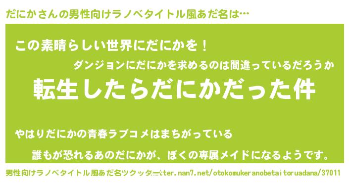 | 胡散臭い通販商品みたいなあだ名 | 『世界中を虜にした100年もののヴィンテージワイン…その名も「だにか」』 |