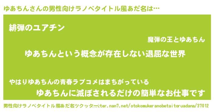 | 女子向けラノベタイトル風あだ名 | 『異世界で失敗しない100のゆあちん』 |
