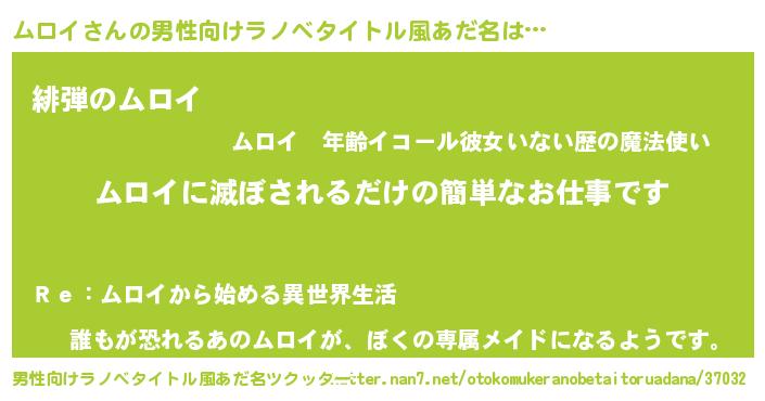 ムロイさんの男性向けラノベタイトル風あだ名をツクッター!