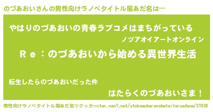 | 女子向けラノベタイトル風あだ名 | 『闇ののづあおい』 |