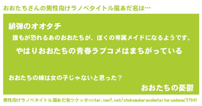 | 女子向けラノベタイトル風あだ名 | 『おおたちの雑貨屋さん』 |