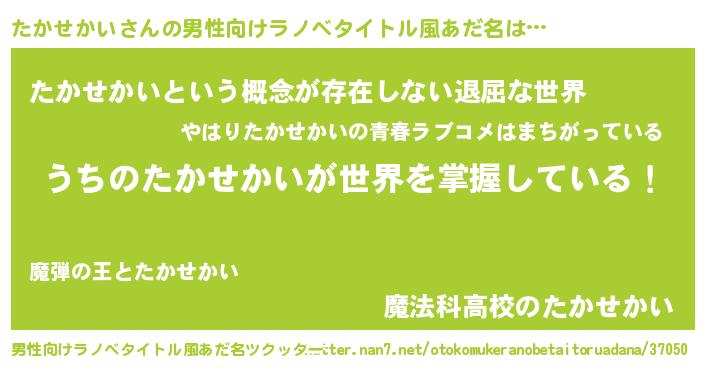| 意味不明あだ名 | 『永久保存たかせかい』『自称たかせかい』 |