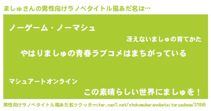 | 女子向けラノベタイトル風あだ名 | 『ましゅの雑貨屋さん』 |