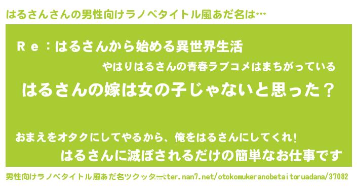 | ヘコむあだ名 | 『はるっぺ』『なまこ酢』 |