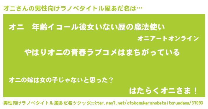 | 女子向けラノベタイトル風あだ名 | 『オニ伯爵の花嫁』『オニの玉の輿計画!』 |