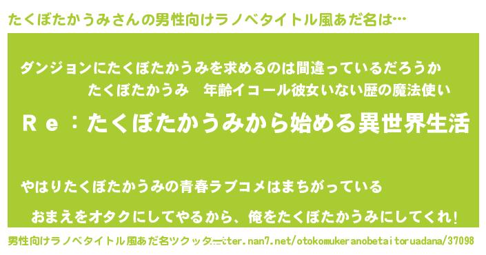 | 女子向けラノベタイトル風あだ名 | 『闇のたくぼたかうみ』 |