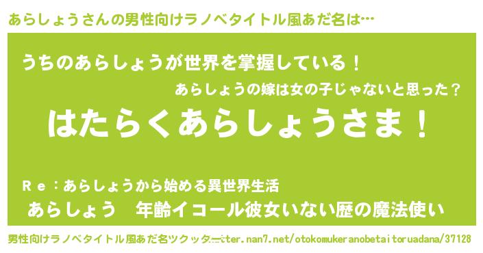 | ヘコむあだ名 | 『あらを』『あらしょう(笑)』 |
