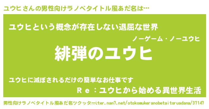 | ヘコむあだ名 | 『ユウヒ(遠い目)』『豆乳』『ユウを』 |