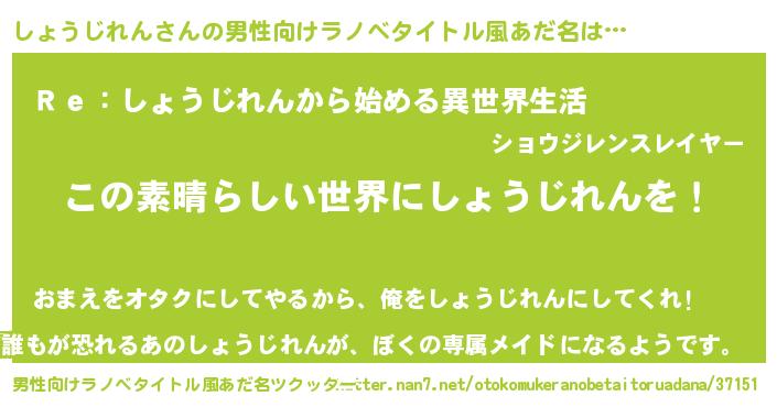 | 女子向けラノベタイトル風あだ名 | 『乙女ゲームの破滅フラグしかない悪役しょうじれんに転生してしまった…』 |