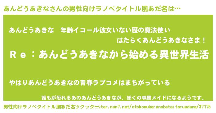 | 女子向けラノベタイトル風あだ名 | 『闇のあんどうあきな』 |