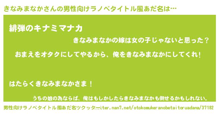 | 女子向けラノベタイトル風あだ名 | 『きなみまなか夫妻のなれそめ』 |