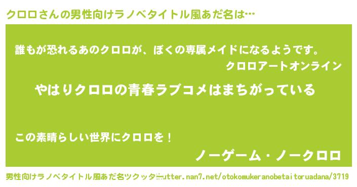 クロロさんの男性向けラノベタイトル風あだ名をツクッター!