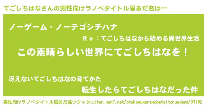 | 意味不明あだ名 | 『住所不定無職てごしちはな(4歳)』 |