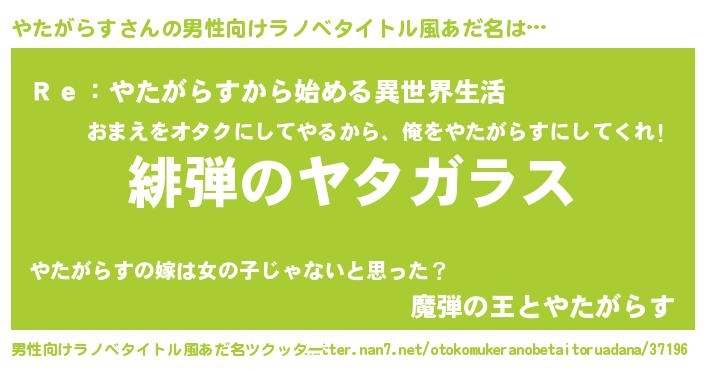 | ヘコむあだ名 | 『やたを』『やたがらす(小並感)』 |