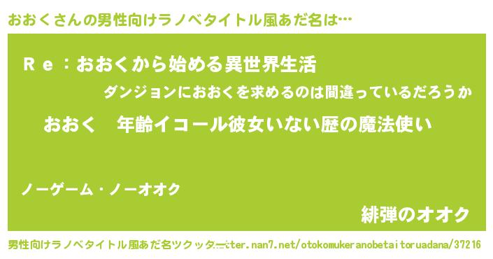 | 意味不明あだ名 | 『ヨモギ科おおく属』『自称おおく』 |