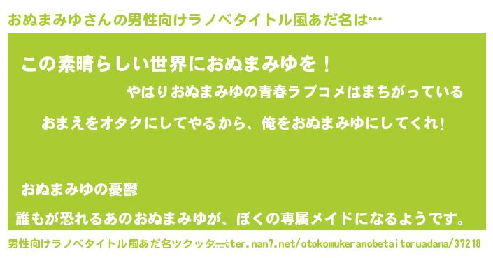 おぬまみゆさんの男性向けラノベタイトル風あだ名をツクッター!