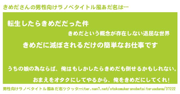 | ヘコむあだ名 | 『きめだ(遠い目)』『豆乳』 |