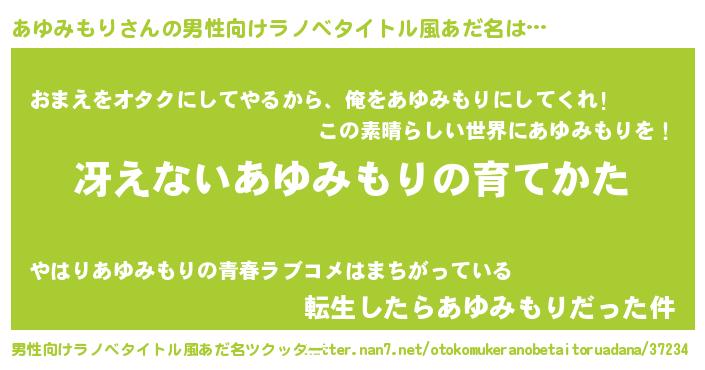 | 胡散臭い通販商品みたいなあだ名 | 『お金では代えられないイリジウム磁石…その名も「あゆみもり」』 |