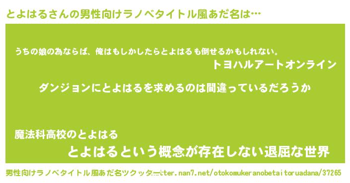 | 女子向けラノベタイトル風あだ名 | 『とよはるの卵を拾いまして』 |