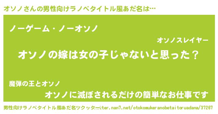 | 女子向けラノベタイトル風あだ名 | 『オソノ様がみてる』『死神オソノの再婚』 |
