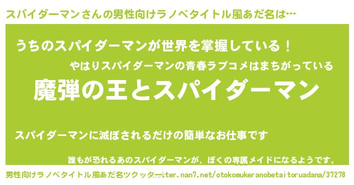 | 女子向けラノベタイトル風あだ名 | 『スパイダーマンが死なない童話 林檎のスパイダーマンの診療簿』 |